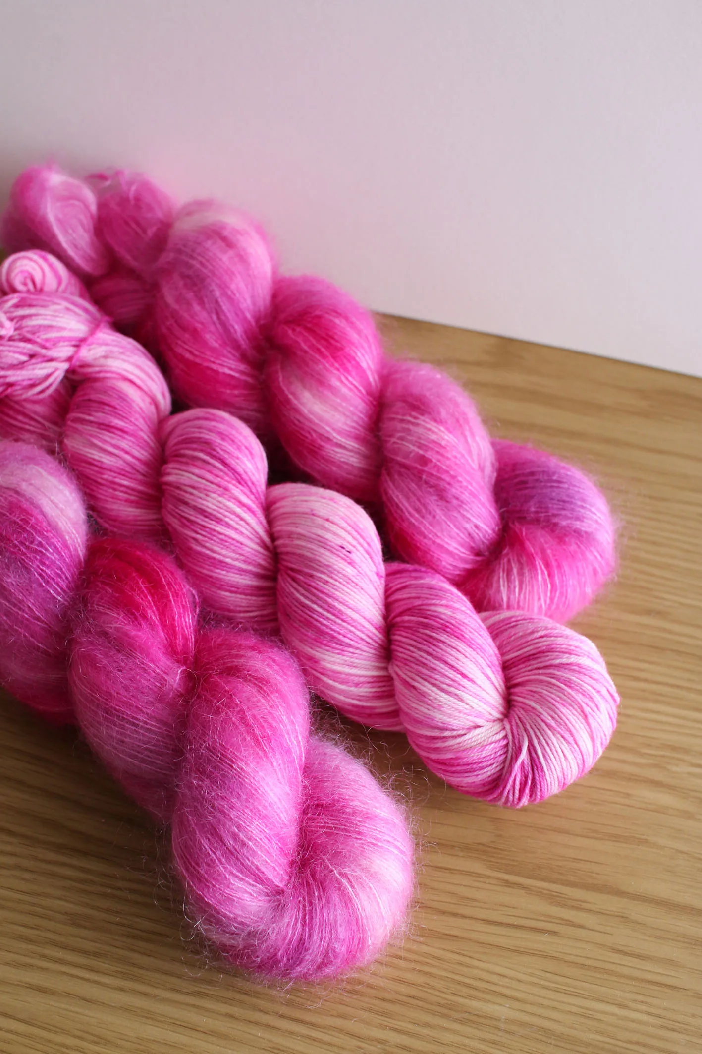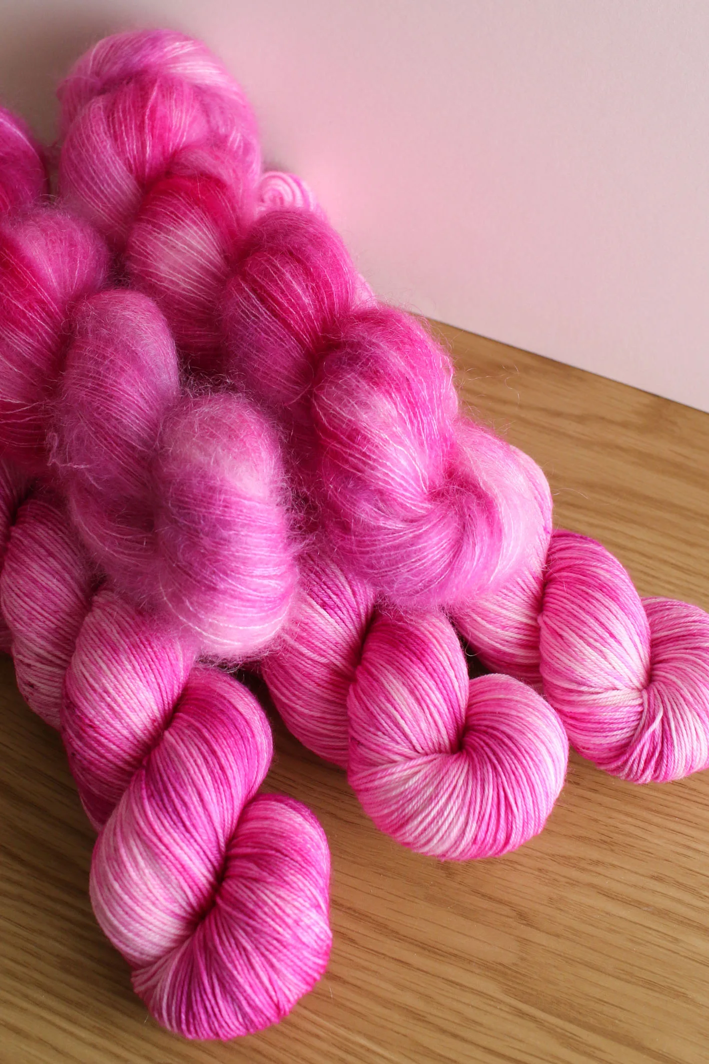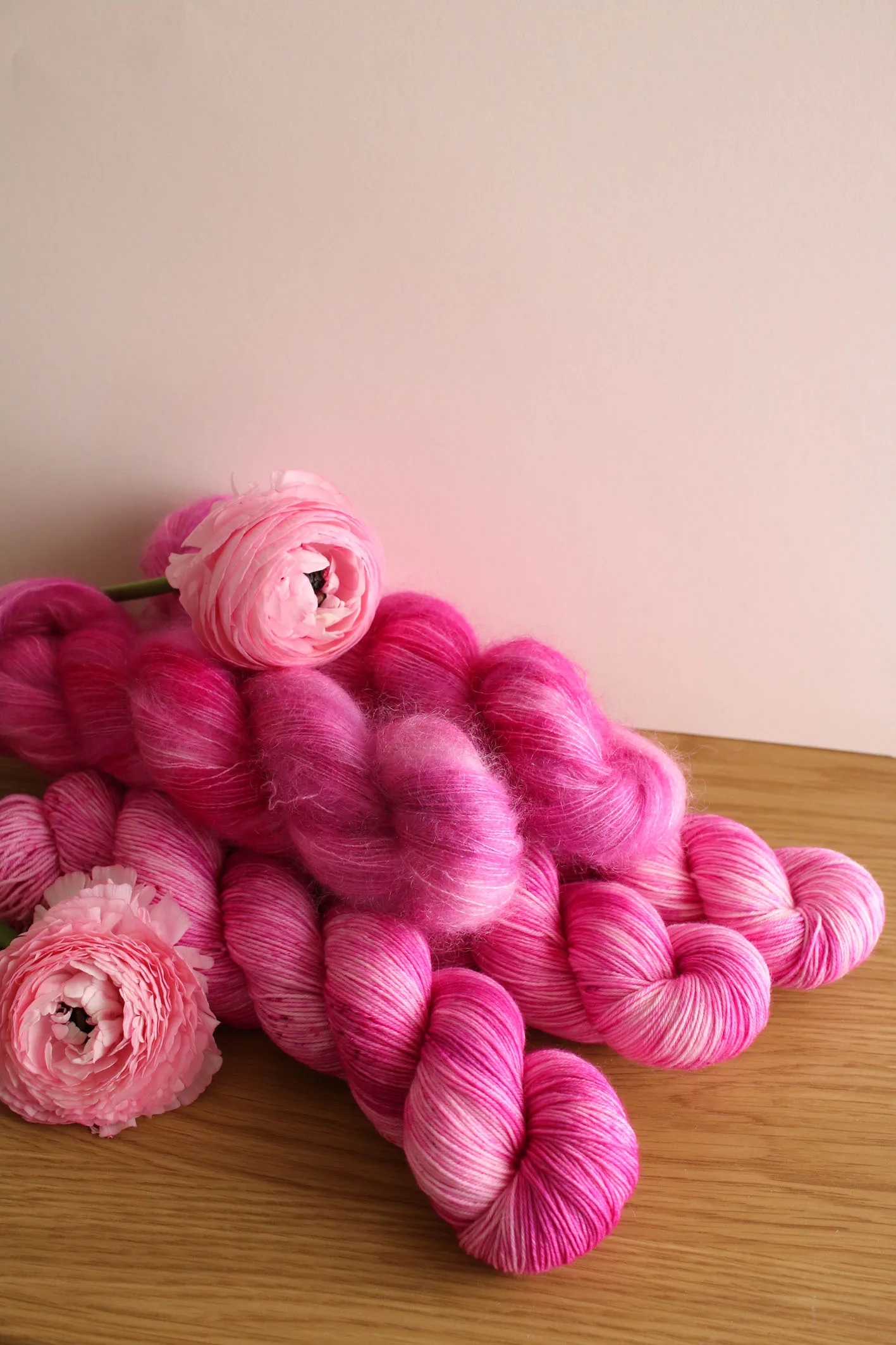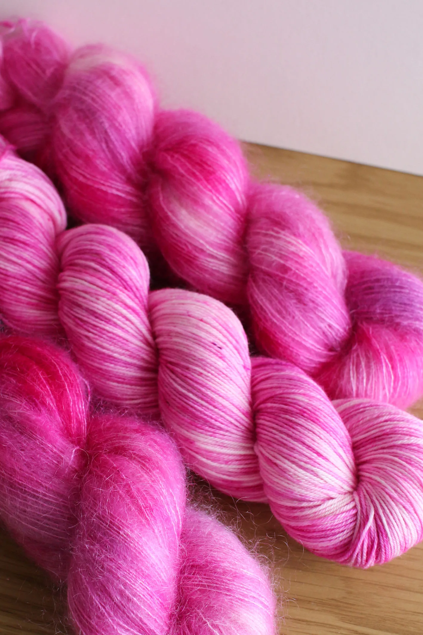 Écheveau teint à la main, disponible sur plusieurs bases de laines au choix.