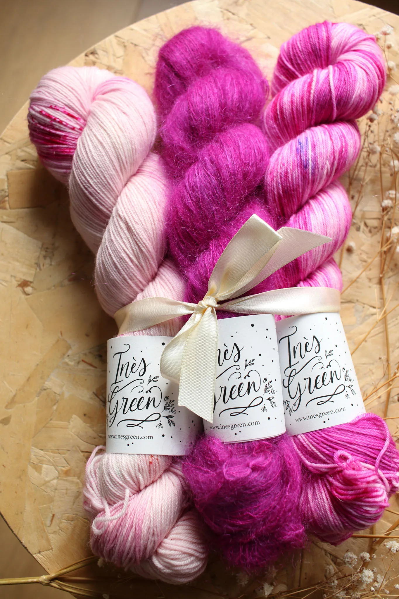 Le Kit Châle Kit Châle Sérénade rose est un magnifique assortiment de Sorbet stock, Love me tender et Belle de nuit. Les nuances délicates de rose, de lavande et de bleu créent une harmonie subtile qui apaise l’œil. La douceur du Sorbet stock se marie à la chaleur de Love me tender, tandis que Belle de nuit apporte une touche de mystère nocturne. Ensemble, ils offrent un équilibre parfait, idéal pour un look élégant et serein, et qui se prête à toutes les occasions.