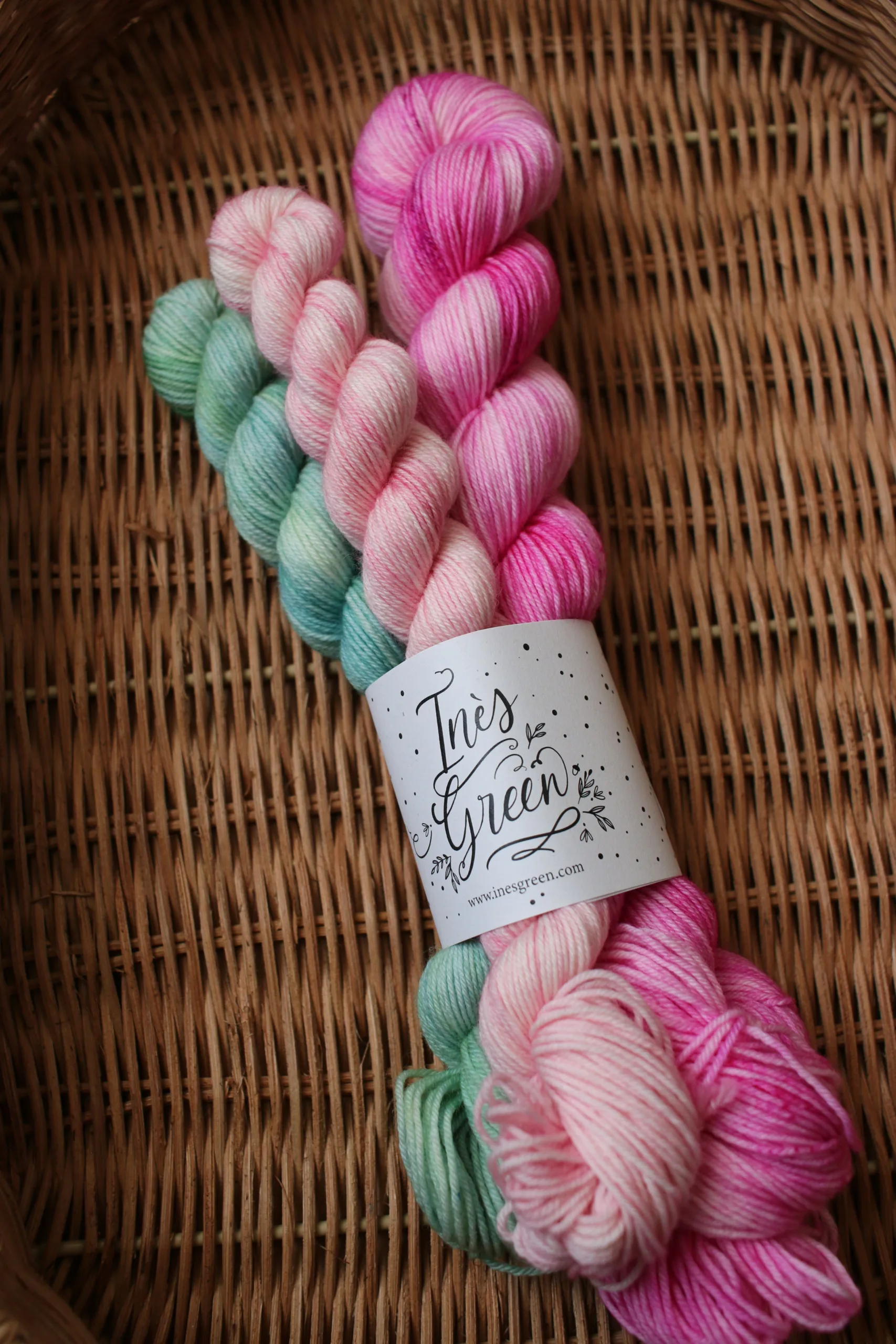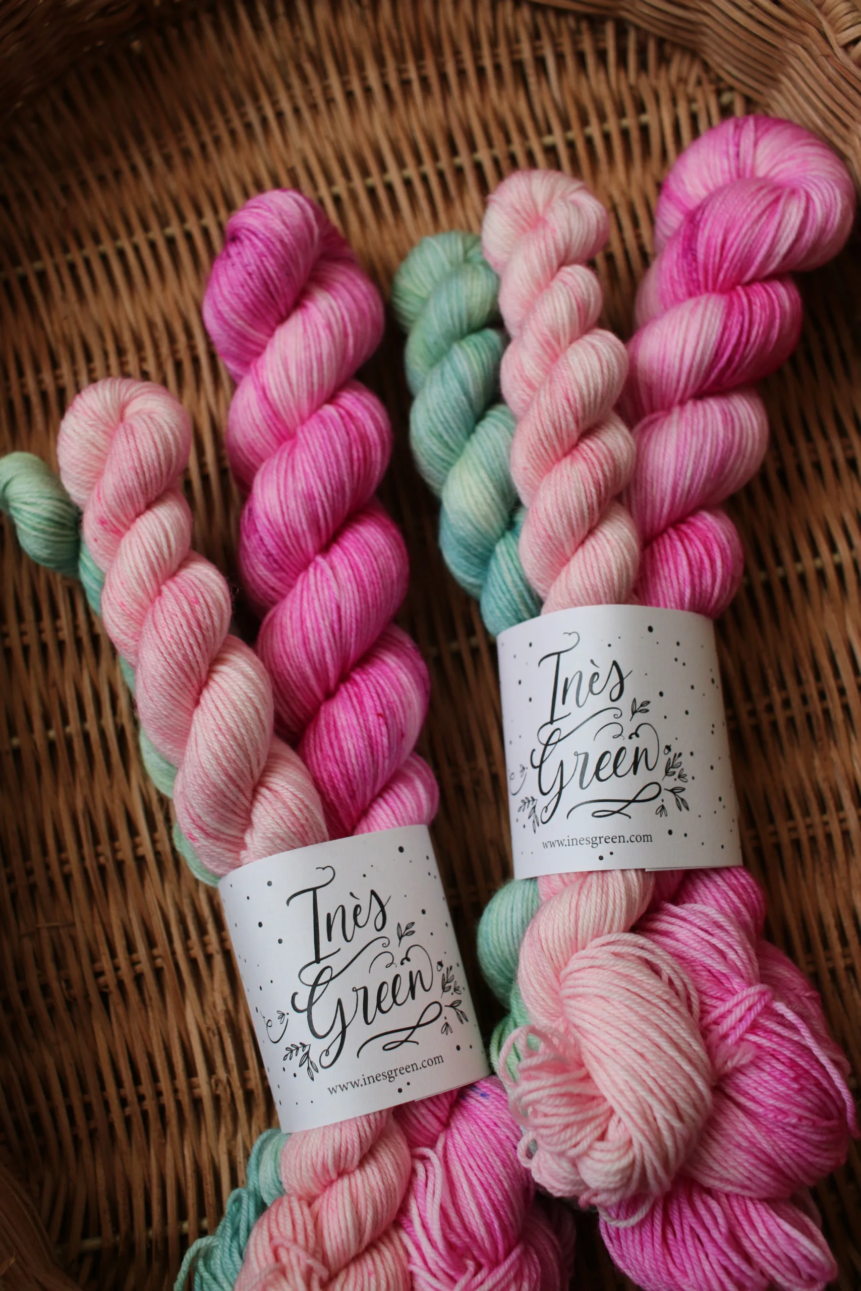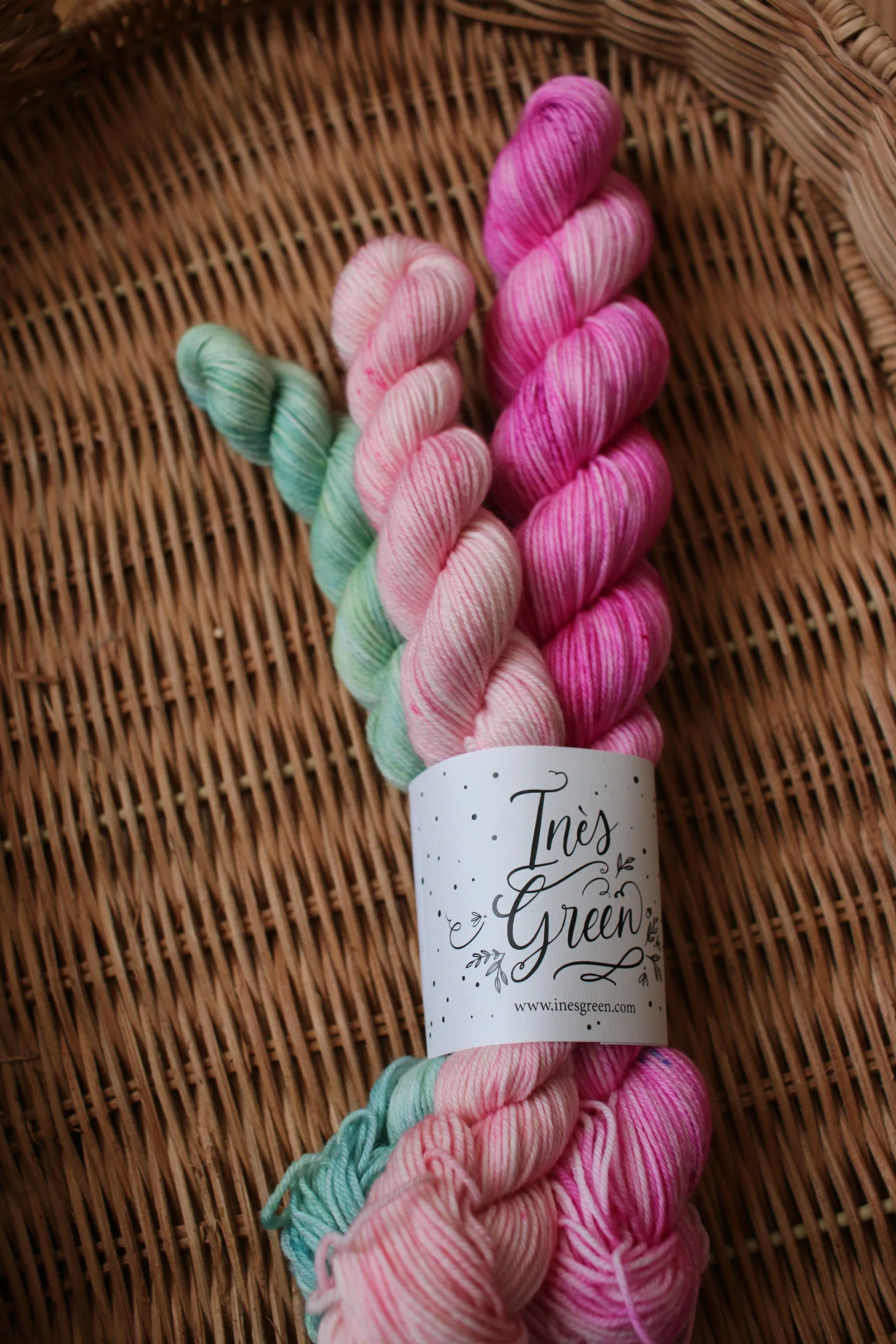 Adoptez le Kit chaussettes Clématite, un savant mélange de teintes douces et pastel de laine teinte à la main qui mêle douceur et pep’s. L’écheveau principal « Clématite », est un rose vibrant et pep’s parsemé de speckles rose fuschia. Il s’accompagne de deux minis contrastants, « Rose Garden » un rose tendre et « Céladon » un vert nuancé. Un kit de laine artisanale idéal pour des chaussettes printanières.