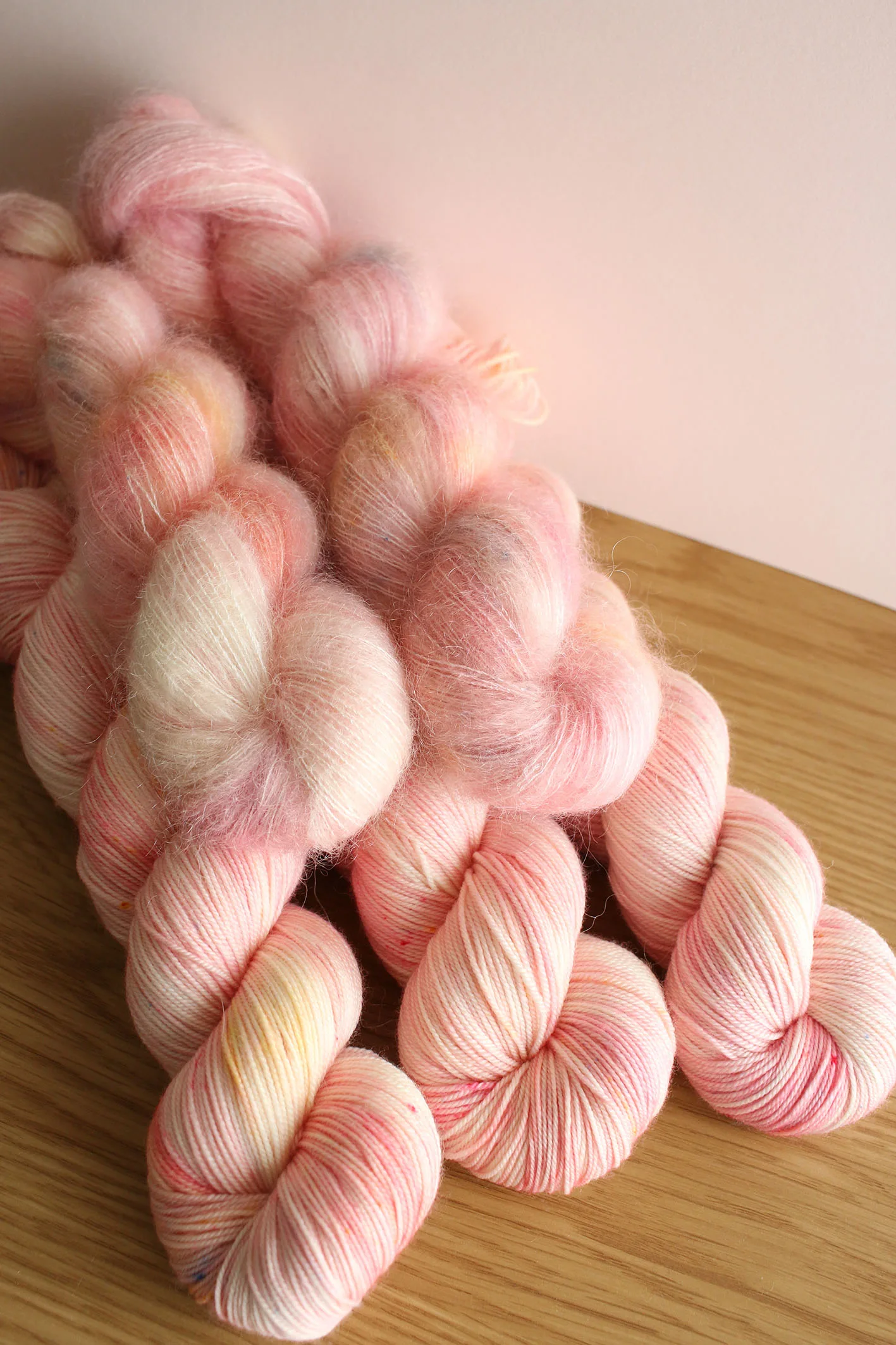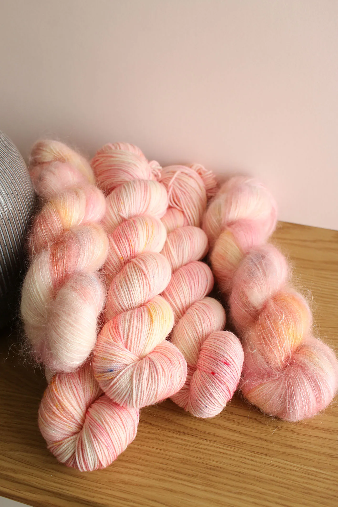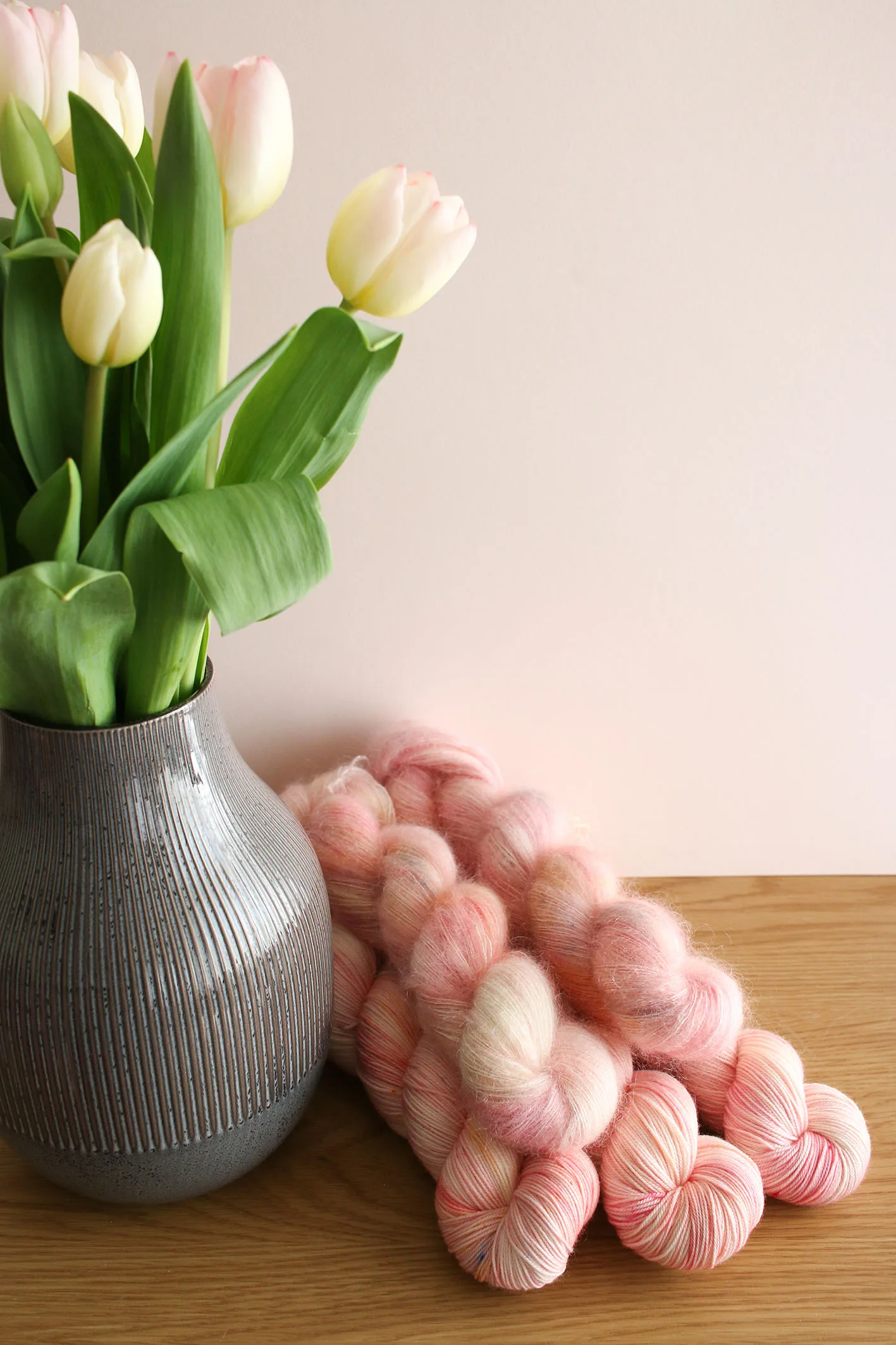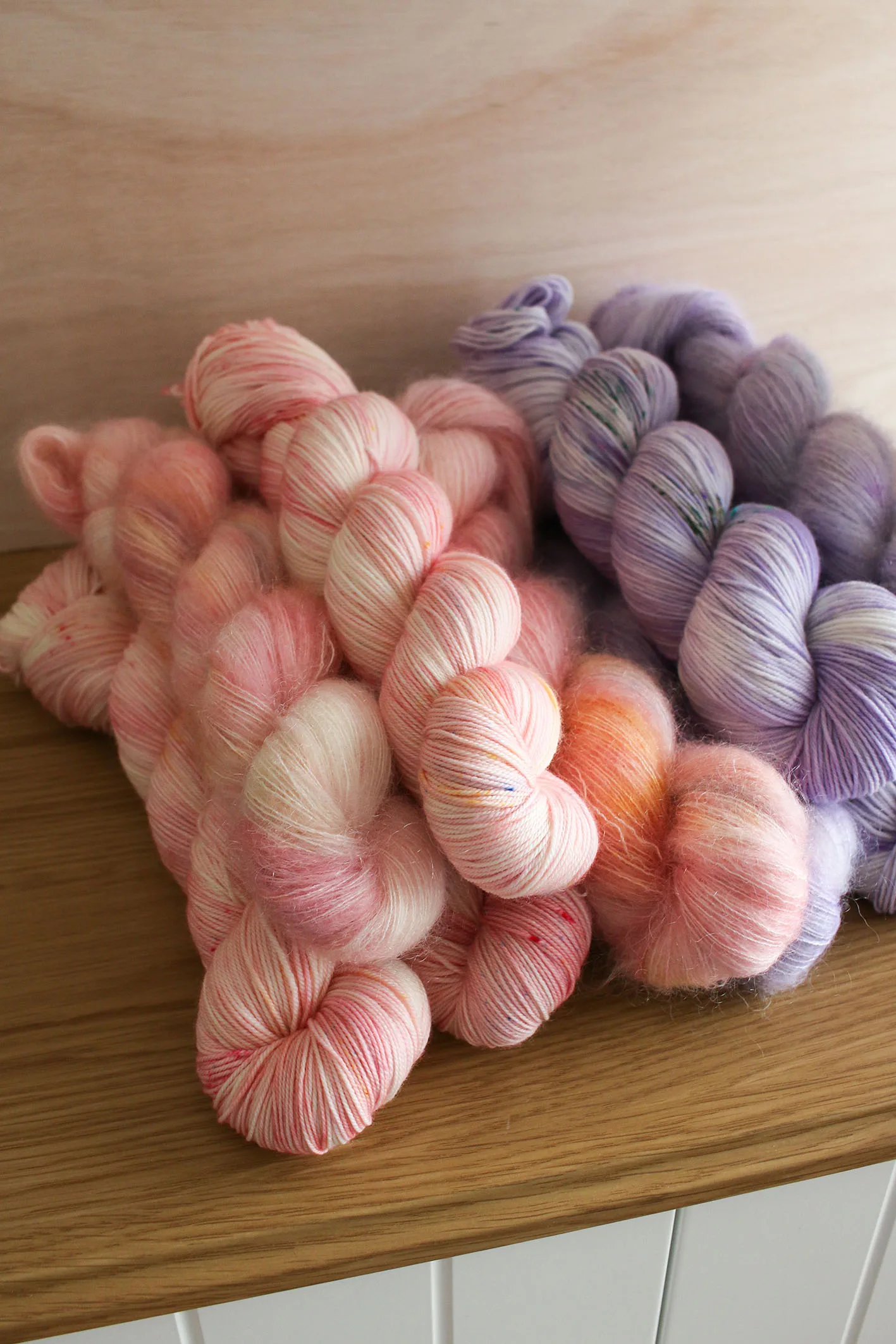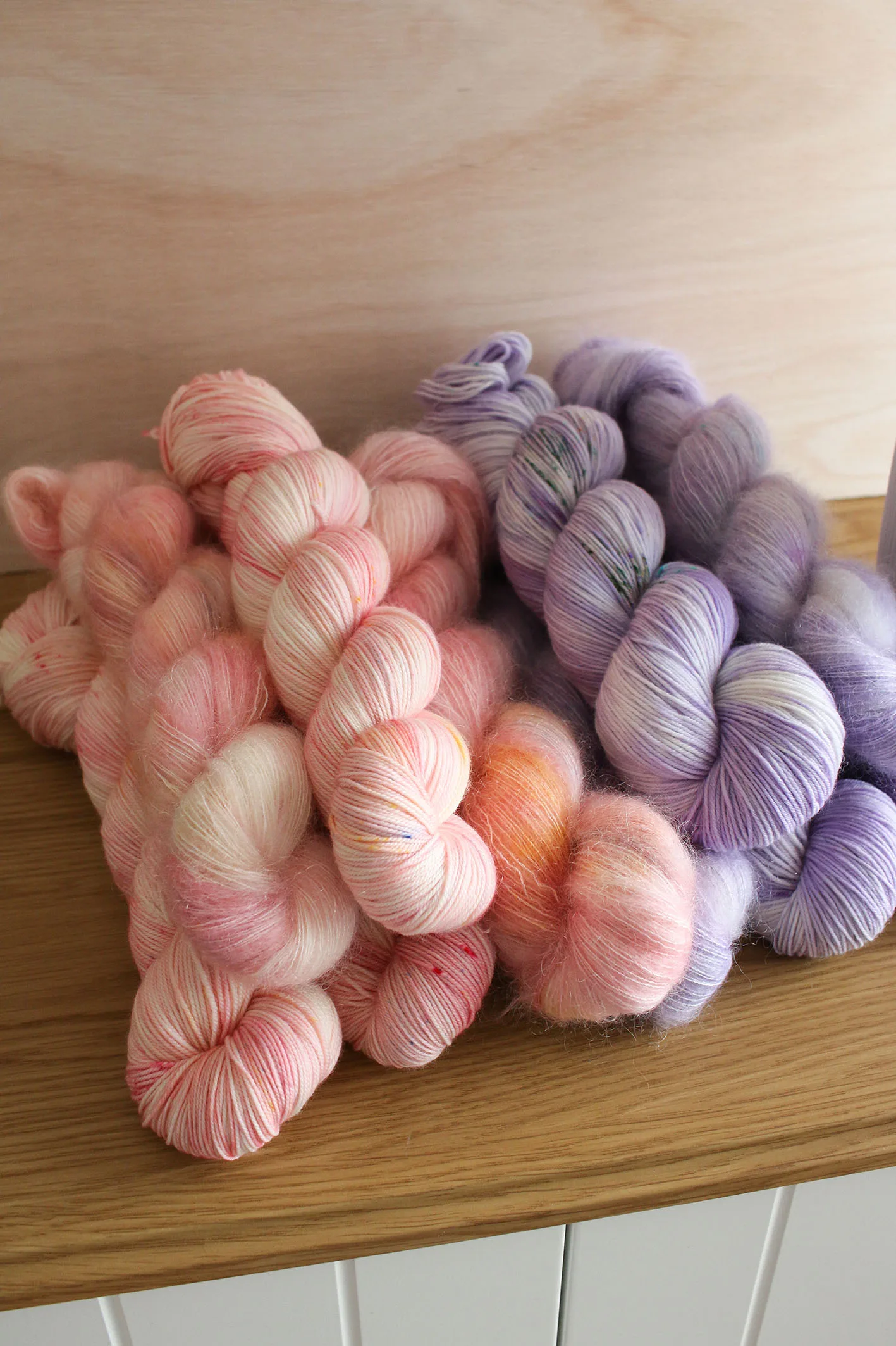 Écheveau teint à la main, disponible sur plusieurs bases de laines au choix.